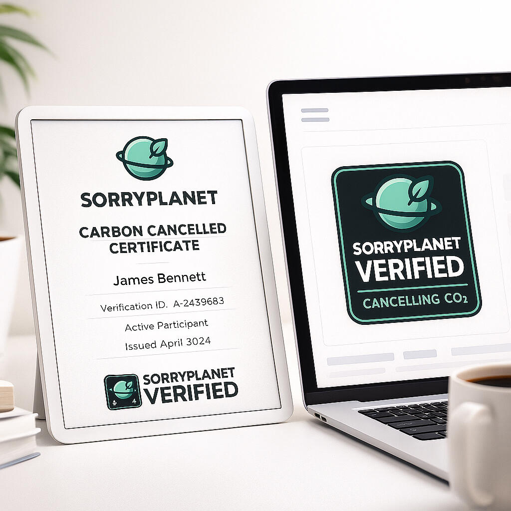 What exactly is SorryPlanet?SorryPlanet is a simple, modern way to show personal climate participation. You receive a digital “Carbon Cancelled” certificate and a Verified badge you can display anywhere.Is this a donation or tax-deductible?No. This is not a donation and is not tax-deductible. It is a symbolic, identity-based digital product representing personal participation.Does this literally cancel all my emissions?No. “Carbon Cancelled” is a symbolic signal of participation — not a scientific measurement or compliance tool. There are no regulatory claims.What do I actually receive?You receive: